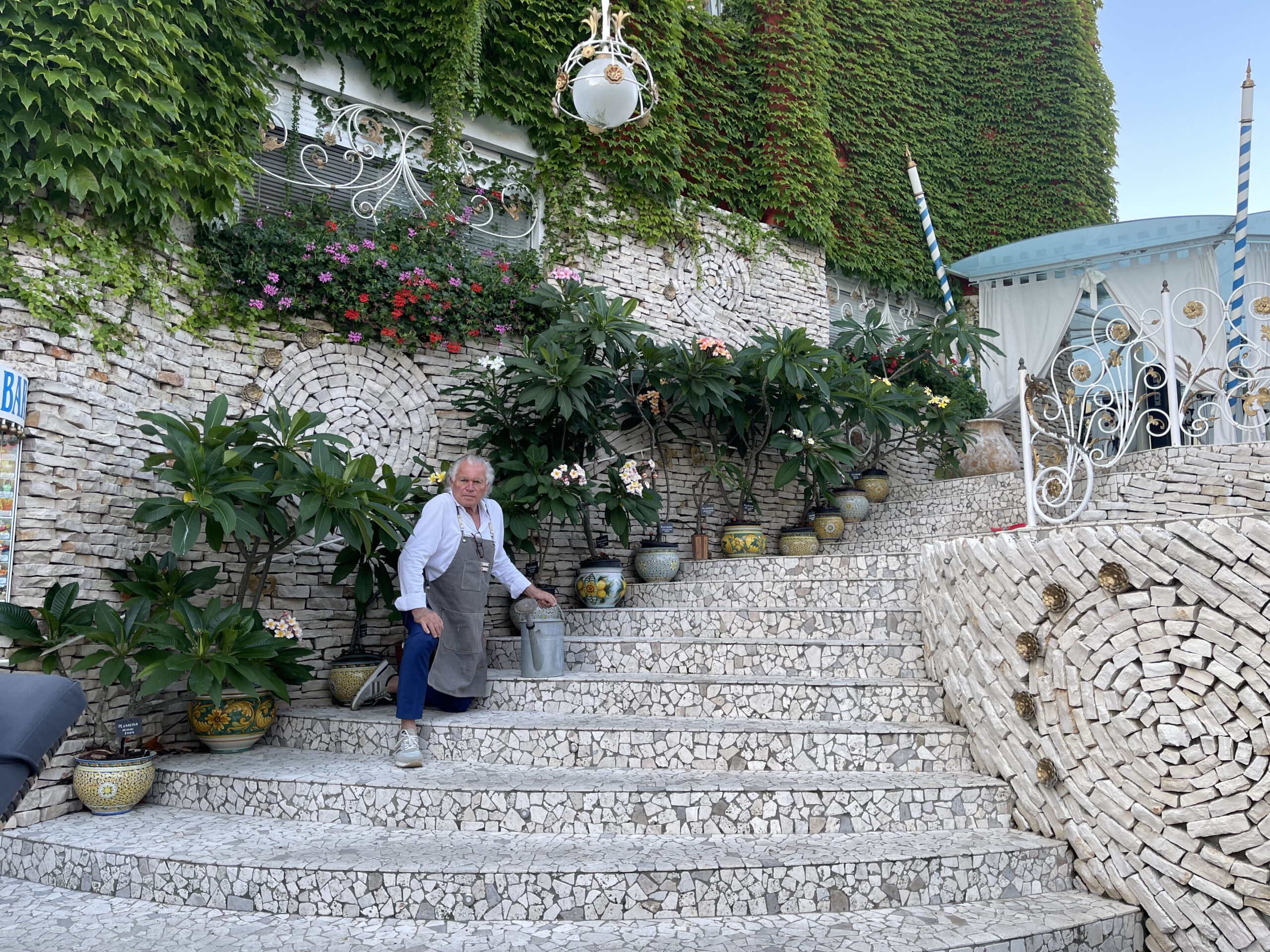 La suggestiva atmosfera del nostro giardino tropicale è ulteriormente enfatizzata dalla presenza al centro della piscina della statua “The Flautist” concepita e realizzata direttamente dal proprietario Daniele Parcianello come dono d’amore alla moglie Fabiana. Interamente realizzata in ferro, con copertura in ceramica dipinta a mano, rappresenta una figura femminile intenta a suonare un flauto traverso ricoperto in foglia d’oro, oggi tra gli elementi più apprezzati e fotografati dell’ hotel.hotel 4 stelle jesolo hotel con piscina hotel spiaggia privata hotel con parcheggio boutique hotel miglior hotel jesolo hotel jesolo